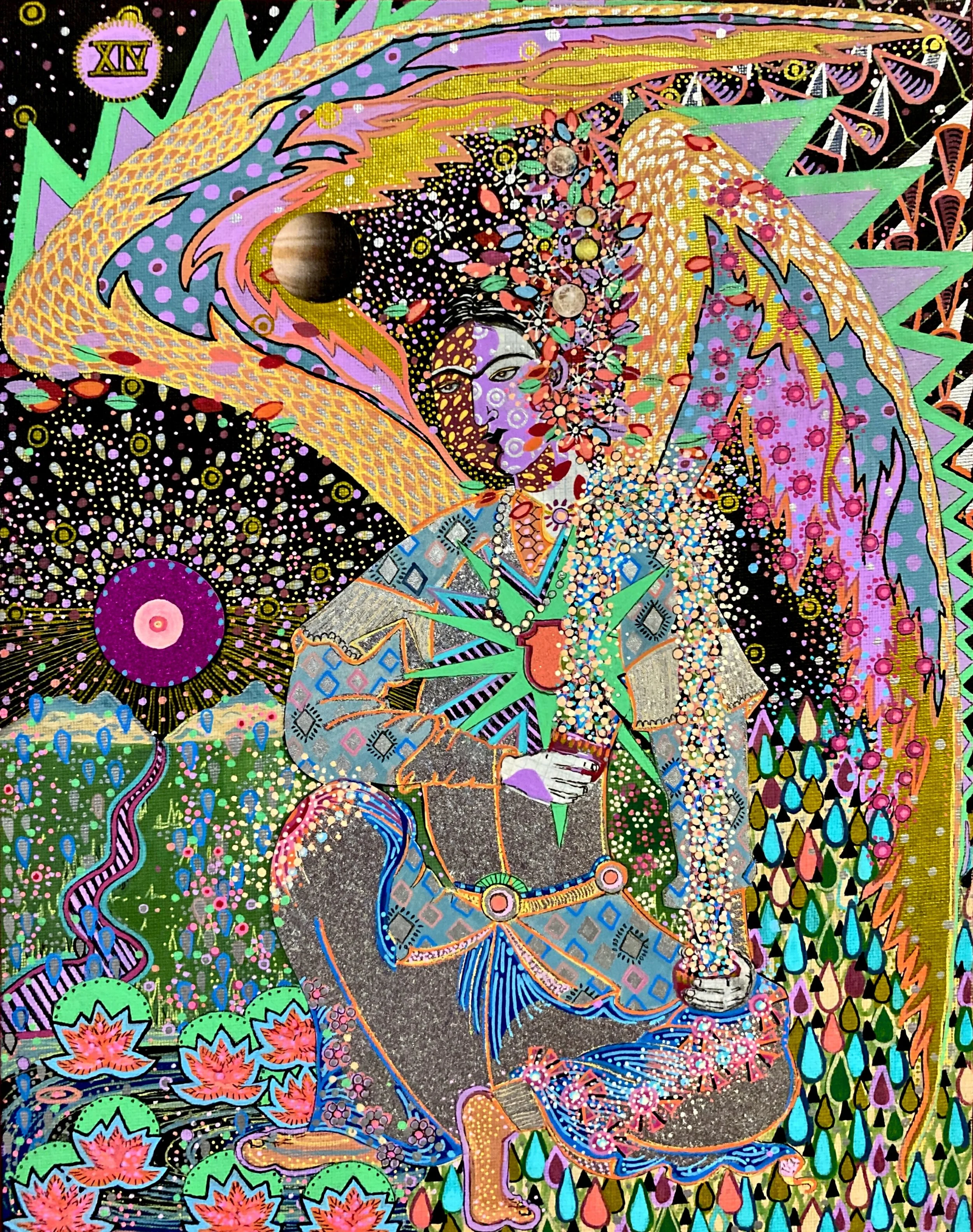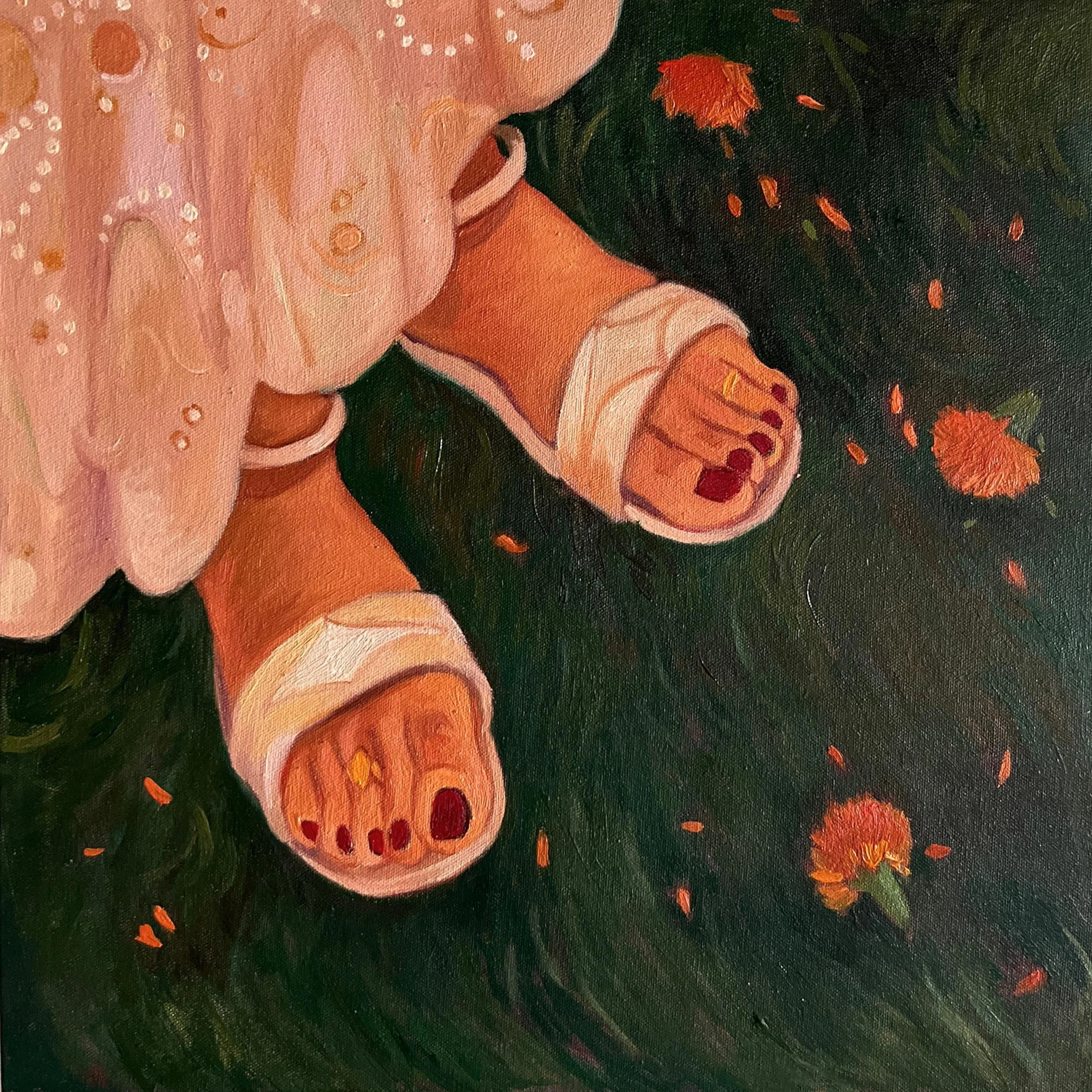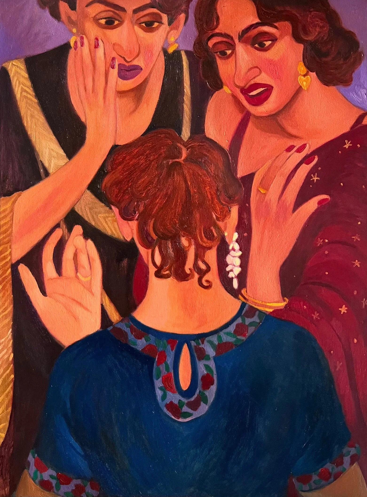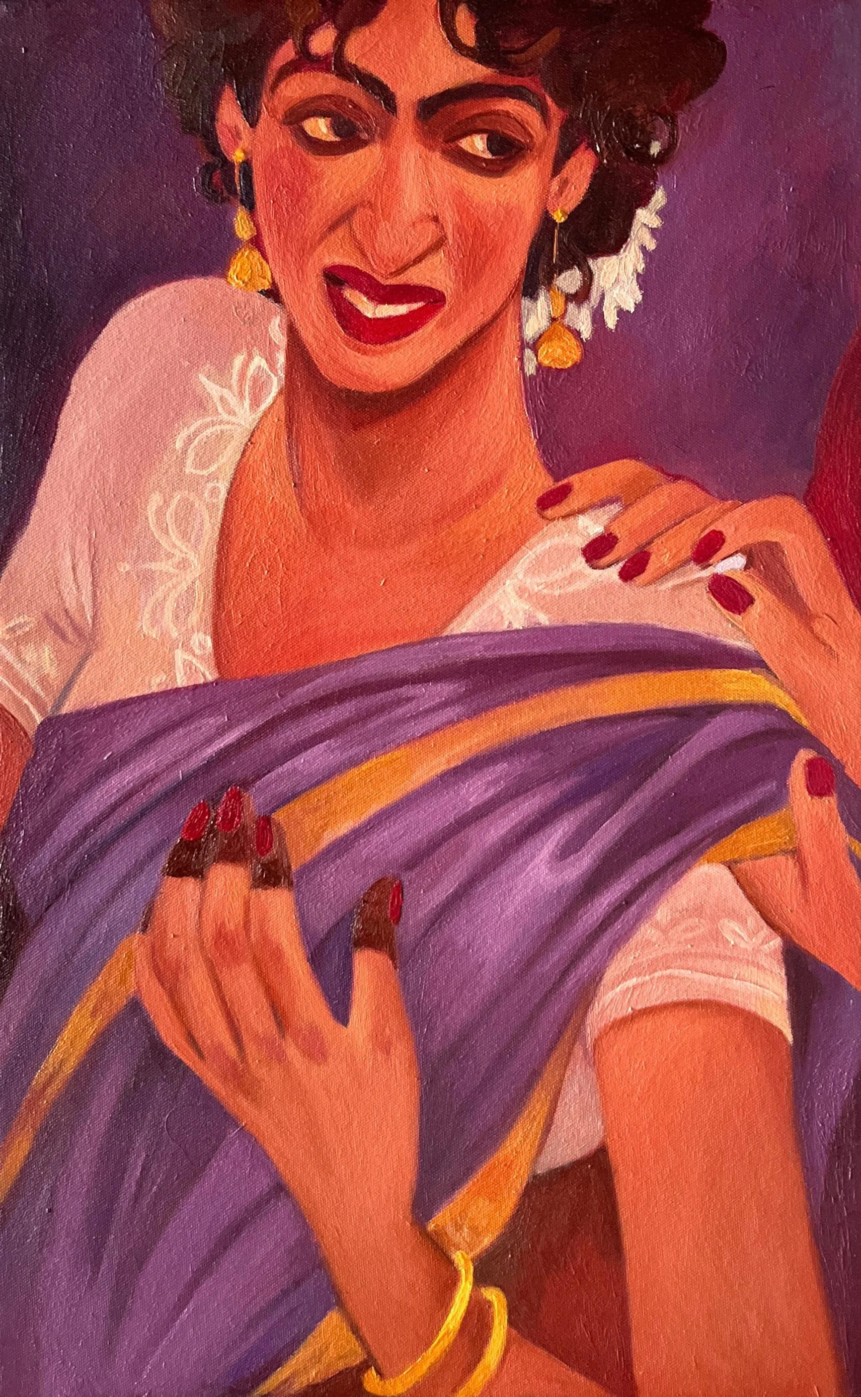 Aksh Diwan Garg is an emerging visual artist based in New Delhi, India. He holds a Bachelor of Fine Art from the College of Art, New Delhi. Aksh renders oil and acrylic in dense, bold strokes, using vivid and rich tones. His paintings often feature semi-autobiographical, gender-neutral figures placed in imagined scenes drawn from personal experiences. Aksh’s sensitive portrayal of human postures, facial expressions and hand gestures brings his figurative characters to life. Styled in strong and groovy attires, hairstyles and jewellery, they flaunt their identity with sensuality. They are unmistakably fearless and independent, each asserting a rightful place in society. The characters and the domains they inhabit are born of Garg's observations of his milieu, and are expressed with flourishes of his own beliefs, personality, fantasies and story-telling. Aksh, who also practises film-making and photography, is making his North American debut in Ways of Being.